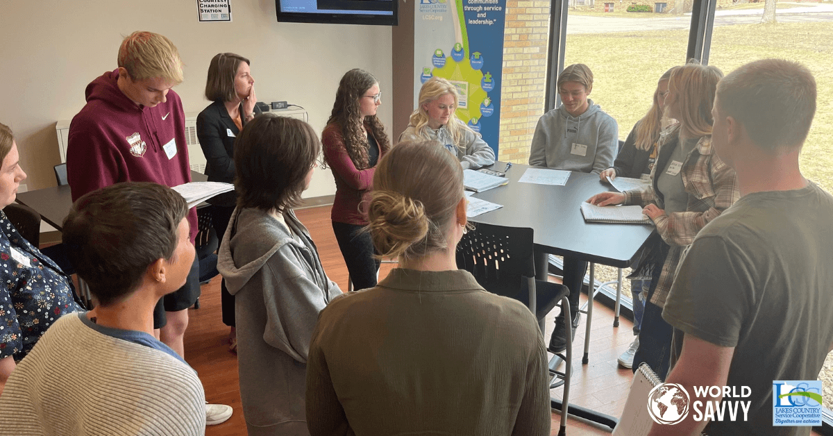 On April 13th, 2023, World Savvy and Lakes Country Service Cooperative (LCSC) brought together students and teachers from west-central Minnesota for a day of exploration and solution-seeking. Over 60 students were in attendance exploring the student-selected theme, “Promoting well-being for all at all ages.”